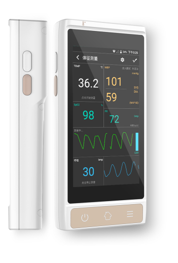 可測量血壓、血氧、脈搏、體溫,記錄大便次數(shù)、呼吸率、心率、尿量等功能,護士和病人身份識別,一鍵保存。